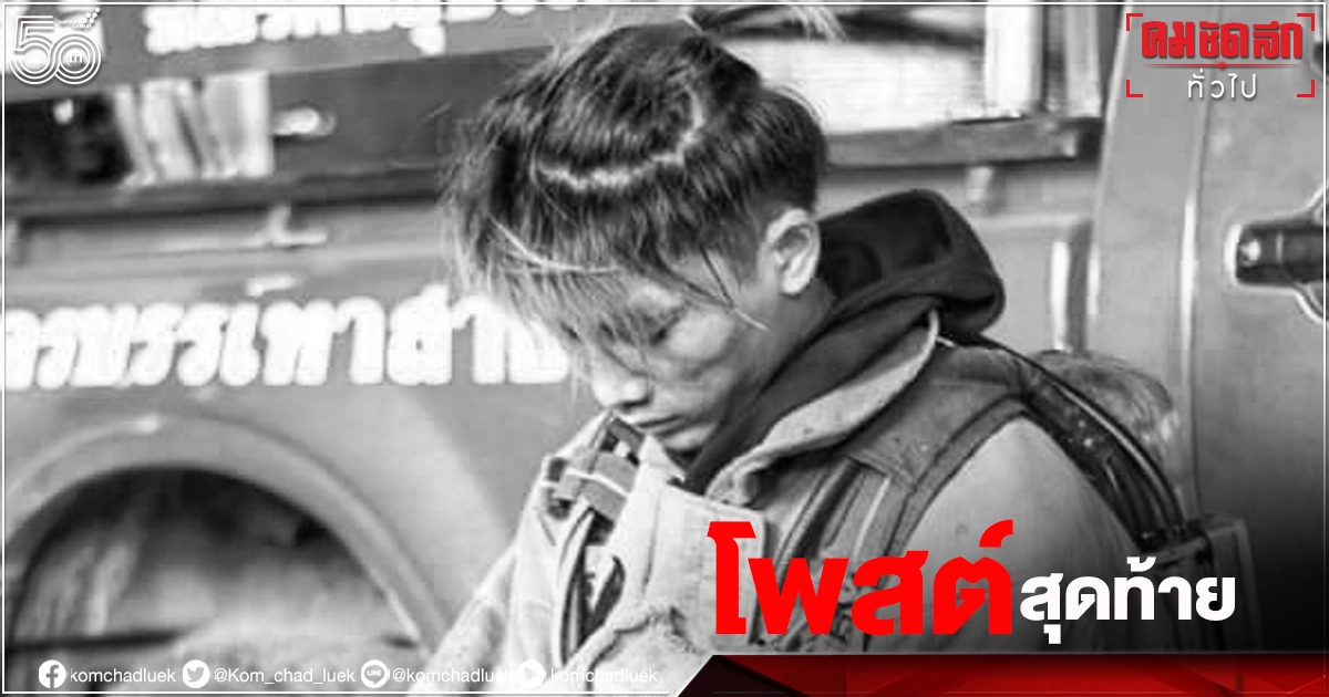 เปิดโพสต์สุดท้าย 'น้องพอส' หนึ่งในฮีโร่นักดับเพลิงเหตุไฟไหม้ "โรงงานกิ่งแก้ว"