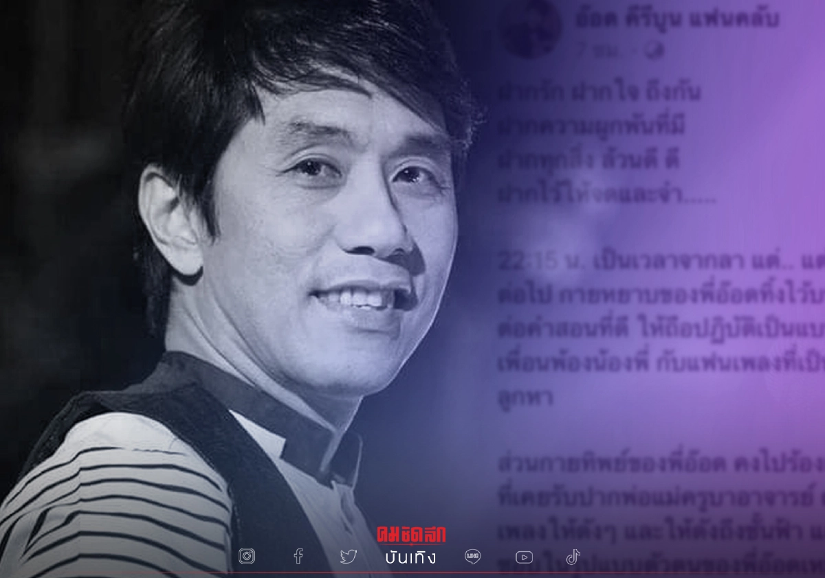 22:15 น. เป็นเวลาจากลา แต่.. แต่ละคนยังคงต้องทำหน้าที่ต่อไป กายหยาบของพี่อ๊อดทิ้งไว้บนโลกใบนี้ พร้อมกับส่งต่อคำสอนที่ดี ให้ถือปฏิบัติเป็นแบบอย่าง ส่งต่อให้กับเพื่อนพ้องน้องพี่ กับแฟนเพลงที่เป็นที่รักทุกคน กับลูกศิษย์ลูกหา ส่วนกายทิพย์ของพี่อ๊อด คงไปร้องเพลงที่สรวงสวรรค์ ตามที่เคยรับปากพ่อแม่ครูบาอาจารย์ ตั้งแต่วัยรุ่นว่าต้องร้องเพลงให้ดังๆ และ ให้ดังถึงชั้นฟ้า และคงปฏิบัติดี ปฏิบัติชอบในรูปแบบตัวตนของพี่อ๊อดเหมือนเคย ในนามของครอบครัวพี่อ๊อด ขอขอบคุณทุกๆ ความรัก ความปรารถนาดี ความห่วงหาอาทรที่มีให้พี่อ๊อดเสมอมา ขอบคุณครับ"