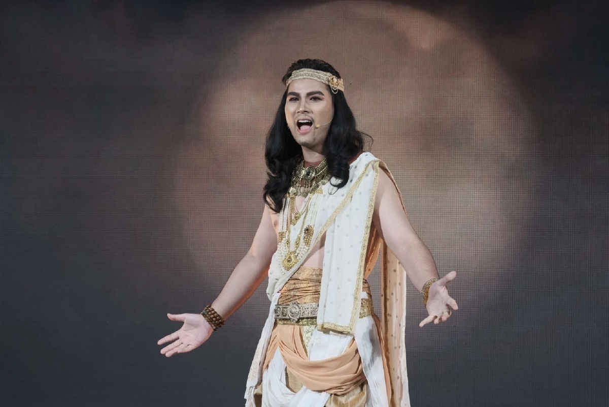 ท่ามกลาง โปรดักชั่น ฉาก แสง สี เสียงตระการตา เสื้อผ้า หน้าผม จัดเต็ม เสมือนอยู่ในดินแดนภารตะแคว้นชมพูทวีป