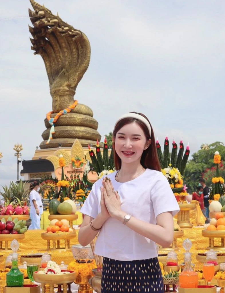 "ปีนี้ แนนบวงสรวงพญานาค 5 รอบแล้วค่ะ สำเร็จเลย ตอนแรกหนูนับถือพญานาค ขึ้นถ้ำนาคาก่อนที่แรก มีบึงโขลงหลง บึงกาฬ และก็คำชะโนด แล้วก็พ่อปู่ที่นครพนม"