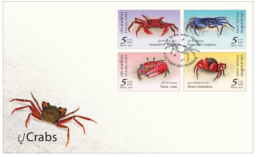 "แสตมป์ชุดปู" บันทึกภาพปูพันธุ์ใหม่ของโลกที่พบในประเทศไทย 3 ชนิด ได้แก่ ปูเขาหินปูนสตูล พบเมื่อ พ.ศ.2559 ปูเขาหินปูนทุ่งหว้า พบเมื่อ พ.ศ. 2560 ในพื้นที่จังหวัดสตูลและรอยต่อบริเวณจังหวัดตรัง ปูทหารยักษ์ปากบารา ถูกค้นพบครั้งแรกแถบท่าเทียบเรือปากบารา และได้รับการเผยแพร่เป็นปูชนิดใหม่เมื่อปี พ.ศ. 2556 โดยปัจจุบันพบเฉพาะในเขตพื้นที่ชายฝั่งอันดามันของประเทศไทย ตั้งแต่จังหวัดระนองไปจนถึงสตูล