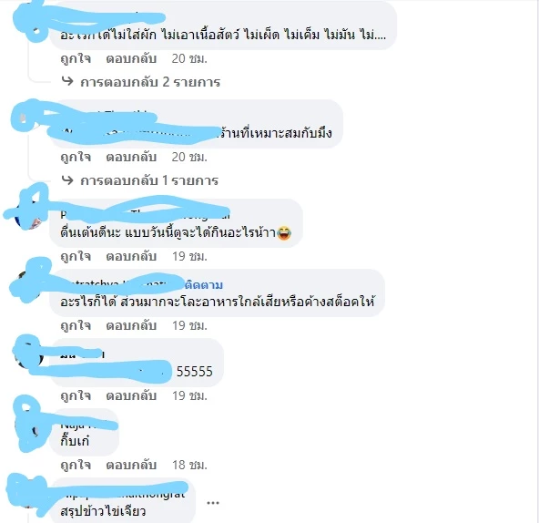 หลังจากที่เรื่องราว "เมนูอาหาร" สำหรับคนขี้เกียจถูกแชร์ออกไปก็เรียกว่า ถูกอกถูกใจชาวเน็ตอย่างมาก หลายคนเคยเจอปัญหาเดี๋ยวกันเกือบทั้งหมด อีกทั้งยังอยากให้หลาย ๆ ร้านมีบริการแบบนี้บ้าง เพราะแต่ละวันก็ไม่รู้จะกินอะไรจริง ๆ หรือบางคนบอกว่าการสั่ง อาหารตามสั่ง แบบนี้ ก็ตื่นเต้นไปอีกแบบ เพราะต้องลุ้นเลยว่าแม่ค้าจะเสิร์ฟอะไรมาให้ นอกจากนี้ยังมีคนแชร์โพสต์ดังกล่าวเป็นจำนวนมาก