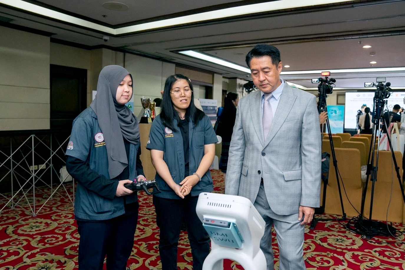 ขณะที่ รศ.ดร. สมชาย สันติวัฒนกุล อธิการบดีมหาวิทยาลัยศรีนครินทรวิโรฒ กล่าวถึง บทบาทของมหาวิทยาลัยศรีนครินทรวิโรฒ ซึ่งมีพันธกิจที่ชัดเจนที่จะดำเนินกิจกรรมต่างๆ โดยมุ่งเน้นในการสร้างประโยชน์เพื่อสังคมและส่วนรวมเป็นอันดับหนึ่ง จึงได้รวบรวมนักวิชาการและผู้ทรงคุณวุฒิต่างๆ ทั้งในด้านวิศวกรรมศาสตร์และด้านสังคม และผู้เชี่ยวชาญด้านกฎหมายสิ่งแวดล้อม เพื่อร่วมในการจัดการประกวดนี้ให้เกิดขึ้นเป็นรูปธรรม โดยคาดหวังว่า โครงการนี้จะเป็นส่วนหนึ่งที่ช่วยผลักดันให้คนไทยและสังคมไทยตระหนักถึงความสำคัญของปัญหาจากฝุ่นละอองชนิดต่างๆ ในอากาศที่ทุกคนต้องหายใจ และหันมาร่วมมือร่วมใจกันในการแก้ไขปัญหานี้อย่างจริงจังและยั่งยืนต่อไป