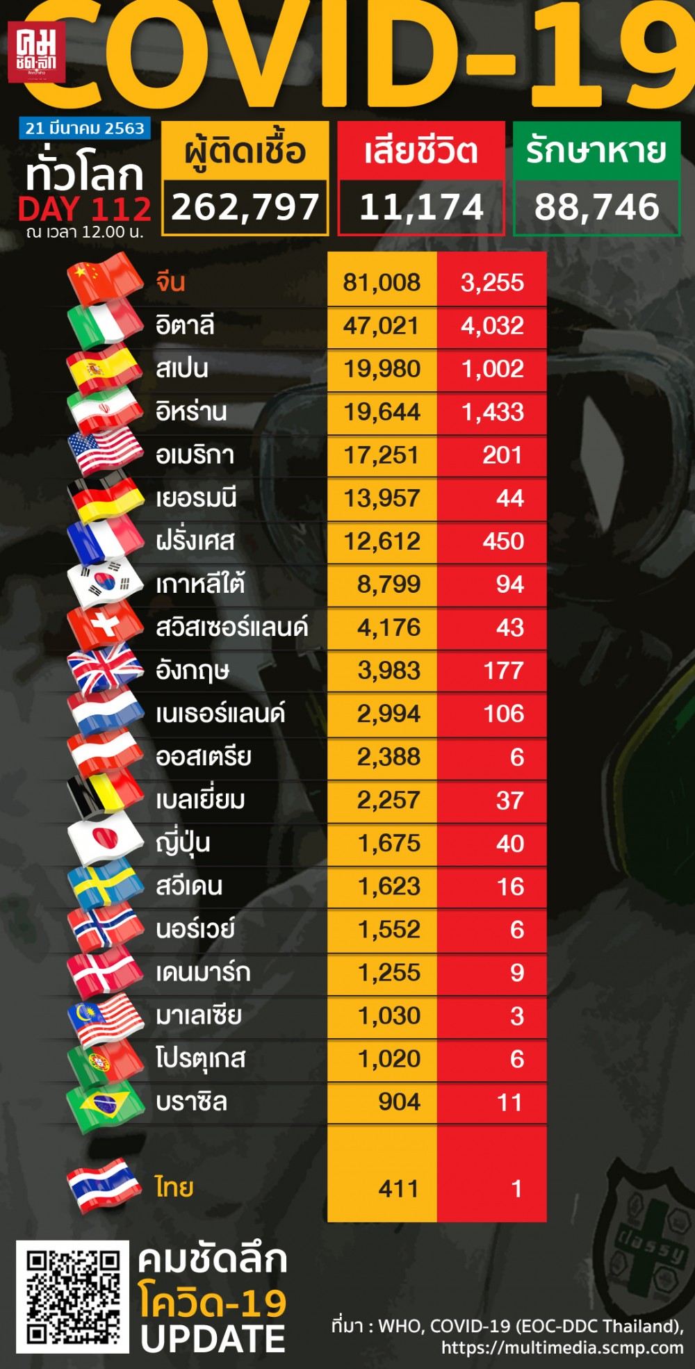 อัพเดทสถานการณ์ "โควิด-19" (Covid-19) 21 มี.ค. 2563