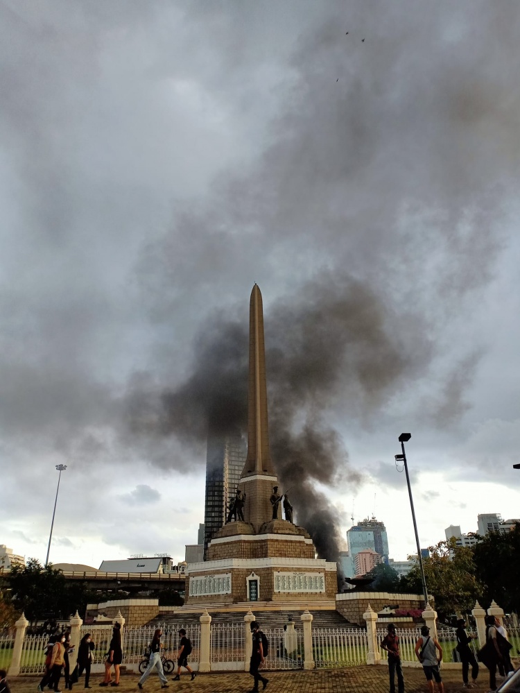 โดยเฉพาะพื้นที่สี่แยกดินแดง ที่มีการปะทะกับเจ้าหน้าที่กระทั่งเกิดเหตุวางเพลิงรถควบคุมผู้ต้องหา