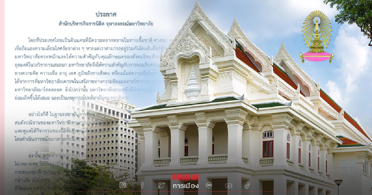 "จุฬาฯ" ไม่นิ่งเฉย ออกประกาศ พร้อมตรวจสอบข้อเท็จจริงดำเนินการทางวินัยกับนิสิตประพฤติตนไม่เหมาะสม ไม่ว่าจะเป็นการออกแถลงการณ์ หรือหนังสือพิมพ์ที่มีเนื้อหากระทบกระเทือนต่อบุคคลเป็นที่เคารพเทิดทูนสักการะของผู้อื่น