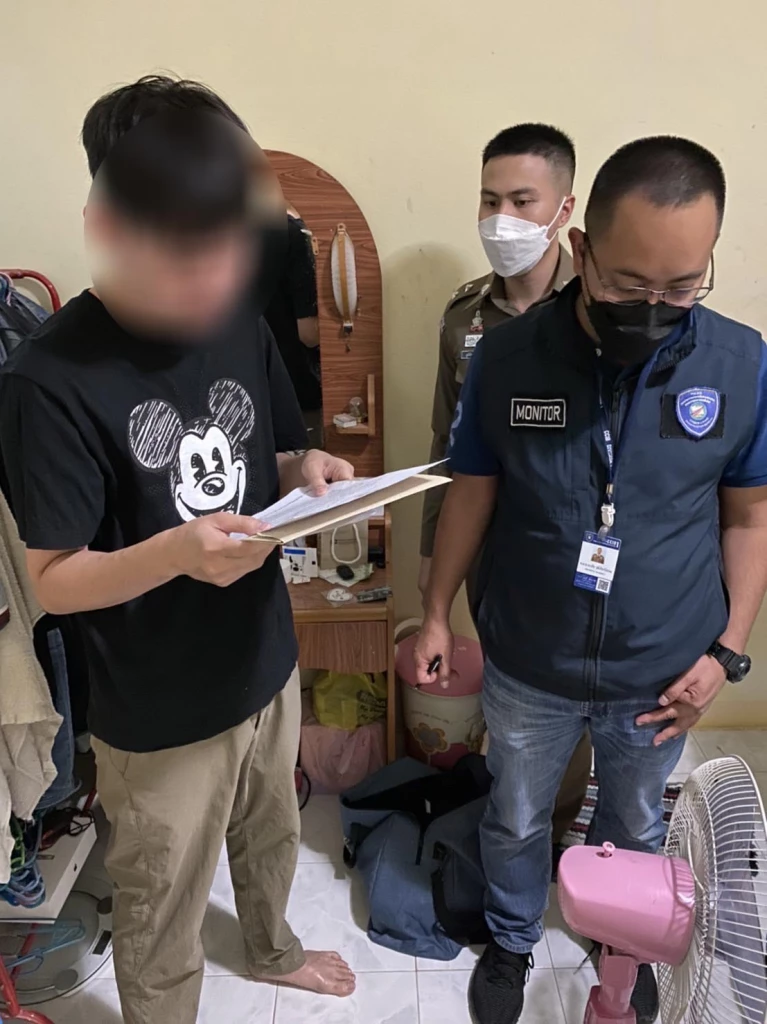 โดยจับกุมได้ที่บ้านพักแห่งหนึ่ง อ.เมืองระยอง จ.ระยอง พร้อมสามารถตรวจยึดของกลาง เครื่องคอมพิวเตอร์โน๊ตบุ๊ค จำนวน 1 เครื่อง , โทรศัพท์มือถือ จำนวน 2 เครื่อง , สมุดบัญชีเงินฝากธนาคาร จำนวน 1 เล่ม
