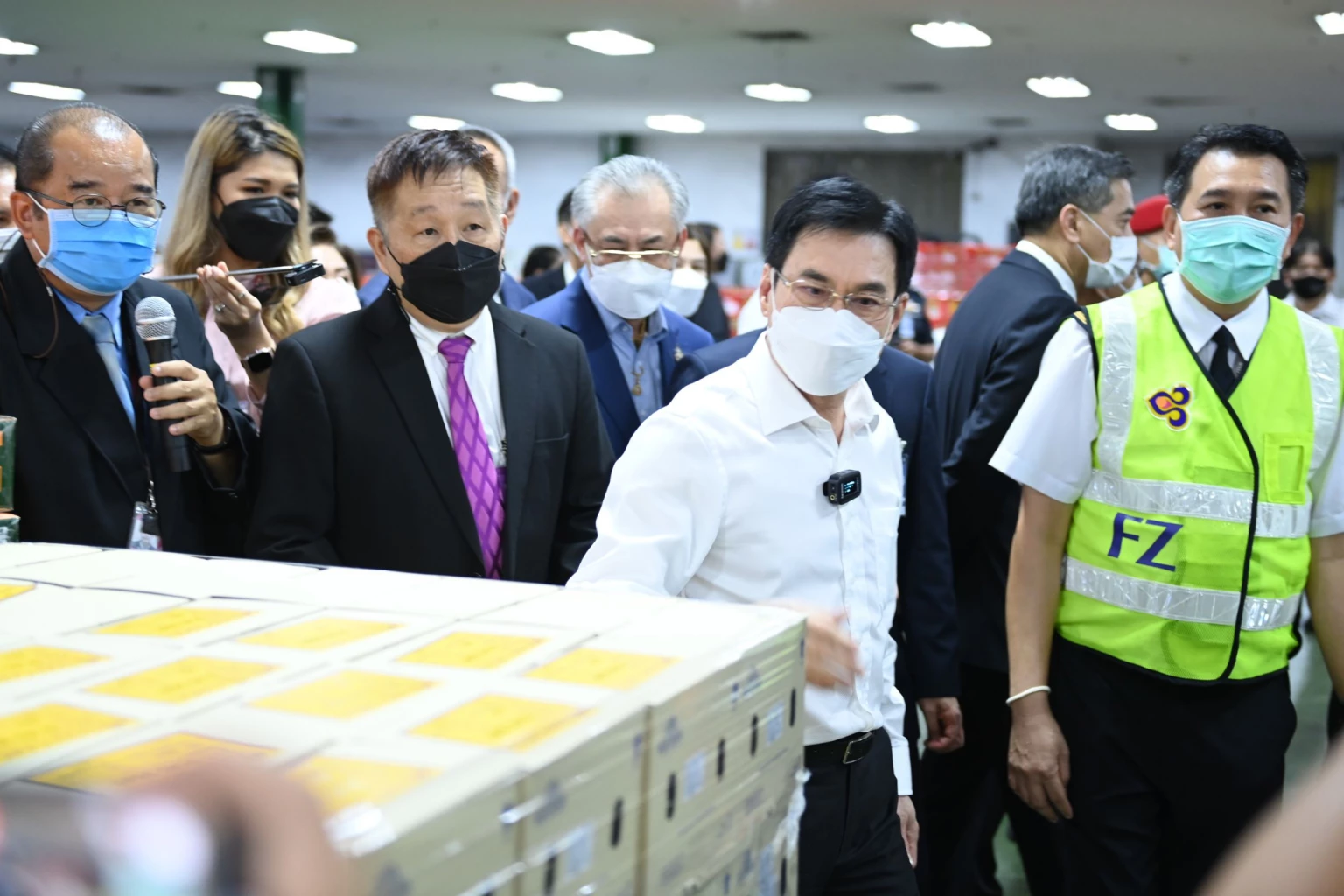 จากนั้นนายจุรินทร์พร้อมด้วยนางมัลลิกา บุญมีตระกูล มหาสุข ที่ปรึกษารัฐมนตรีว่าการกระทรวงพาณิชย์ , นายกีรติ รัชโน รองปลัดกระทรวงพาณิชย์, นายภูสิต รัตนกุล เสรีเริงฤทธิ์ อธิบดีกรมส่งเสริมการค้าระหว่างประเทศ , นายวัฒนศักย์ เสือเอี่ยม อธิบดีกรมการค้าภายใน, นายกิตติพงษ์ กิตติขจร ผู้อำนวยการท่าอากาศยานสุวรรณภูมิ นายสุวรรธนะ สีบุญเรือง ประธานเจ้าหน้าที่บริหารบริษัทการบินไทยจำกัด (มหาชน) พร้อมคณะได้เดินเยี่ยมชมกระบวนการและขั้นตอนการขนส่งผลไม้ภายในศูนย์ขนส่งสินค้าของสด ที่อาคารขนถ่ายสินค้าตามลำดับ