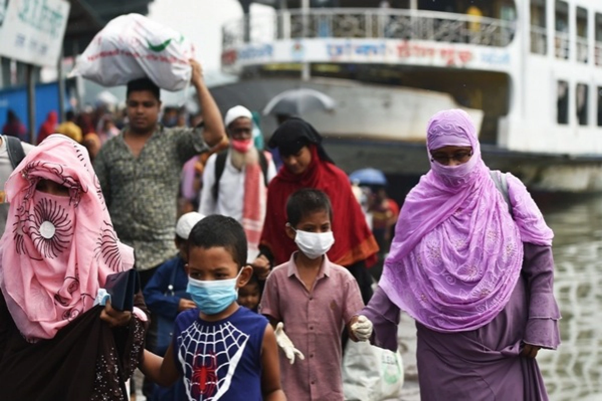 (แฟ้มภาพซินหัว : ผู้คนสวมหน้ากากอนามัยเดินออกจากท่าเรือ ณ กรุงธากา ประเทศบังกลาเทศ เมื่อวันที่ 10 ก.ย. 2020)