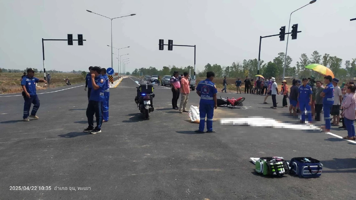 22 เม.ย. 2568 เวลา 10.45 น. ร.ต.อ ประพัฒน์ ก๋าคำ รอง สว.(สอบสวน)สภ.จุน จ.พะเยา รับแจ้งเกิดอุบัติเหตุรถยนต์เก๋งชนรถจักรยานยนต์ ทางแยกไฟแดง ถนน R3A ช่วงบ้านสันหลวง หมู่ 5 ตำบลทุ่งรวงทอง อำเภอจุน จังหวัดพะเยา มีผู้เสียชีวิต 1 ราย หลังรับแจ้งรุดไปที่เกิดเหตุพร้อมด้วยแพทย์นิติเวชโรงพยาบาลจุน งานป้องกันบรรเทาสาธารณภัยไกรทอง ชุดกู้ชีพกู้ภัยกวนอู สำนักงานใหญ่ กู้ภัยนรสิงห์จุน