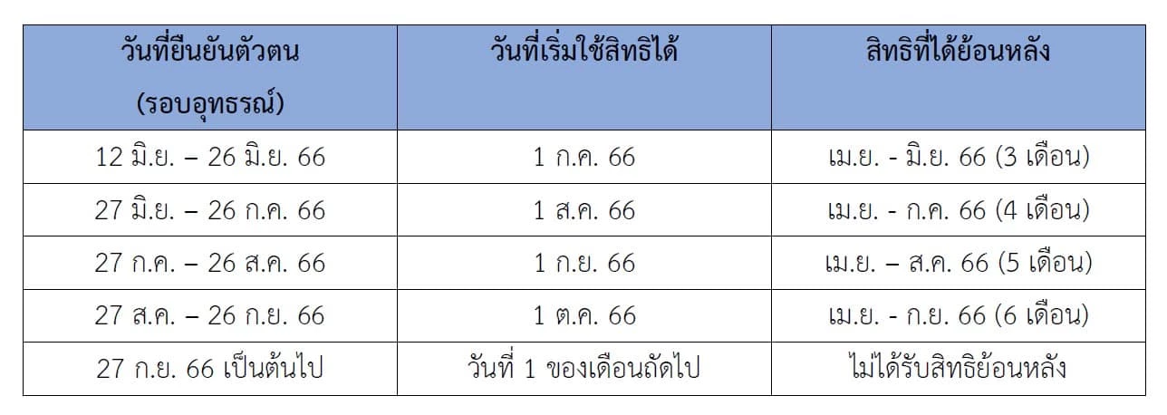 - 27 ส.ค.-26 ก.ย. 2566 ใช้สิทธิ 1 ต.ค. 2566 ย้อนหลัง เม.ย.-ก.ย. 2566 (6 เดือน)
