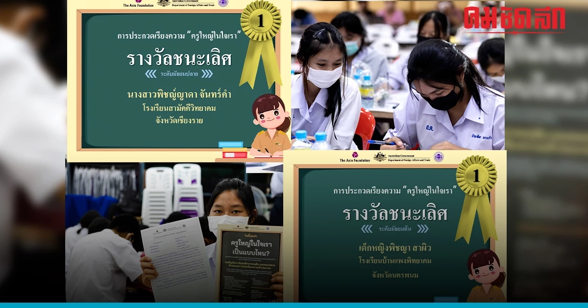 มูลนิธิเอเชีย ร่วมกับ กต.และพันธมิตร เปิดเวทีให้นักเรียนชั้น ม.1-ม.6 ทั่วประเทศ ส่งผลงานประกวดเรียงความ ประกาศผลแล้ว เด็กนครพนม-เชียงราย คว้าแชมป์เรียงความ “ครูใหญ่ในใจเรา” เช็ครายละเอียดที่นี่