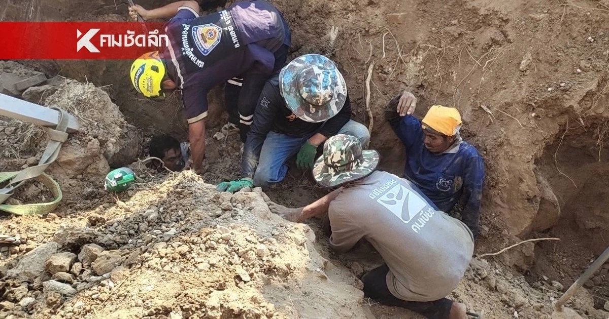 ระทึก! ดินสไลด์ถล่มทับ 2 คนงานก่อสร้าง ท่อระบายน้ำใน รพ. หนองกี่