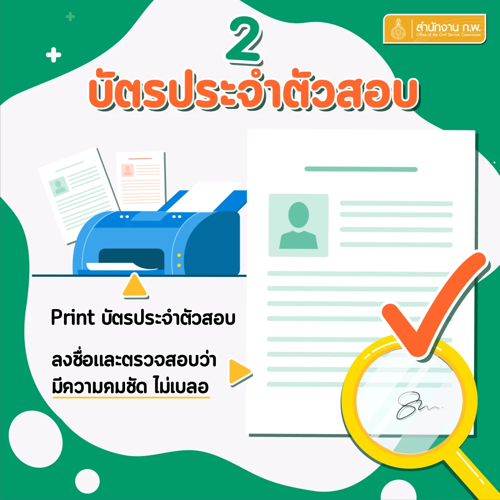 - ปริ๊นท์บัตรประจำตัวสอบ "สีหรือขาวดำก็ได้" จากเว็บไซต์ job3.ocsc.go.th คลิกที่นี่ ลงชื่อและตรวจสอบว่ามีความคมชัด ไม่เบลอ