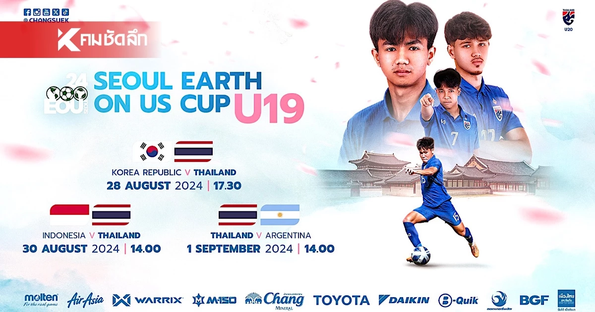 รายชื่อ ทีมชาติไทย U20 โปรแกรมอุ่นเครื่อง Seoul Earth On US 2024