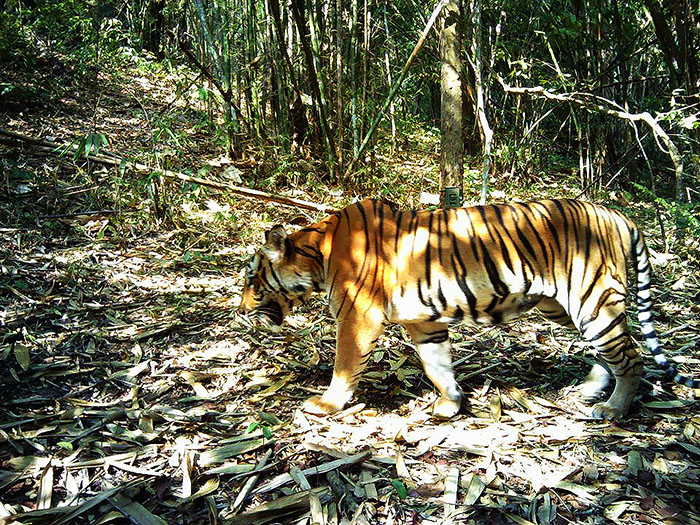 นักวิจัยพบเสือโคร่งตัวแรก ในผืนป่ารักษาพันธุ์สัตว์ป่าสลักพระ พร้อมตั้งชื่อ "SLT001M " จากการตั้งกล้องดักถ่าย
