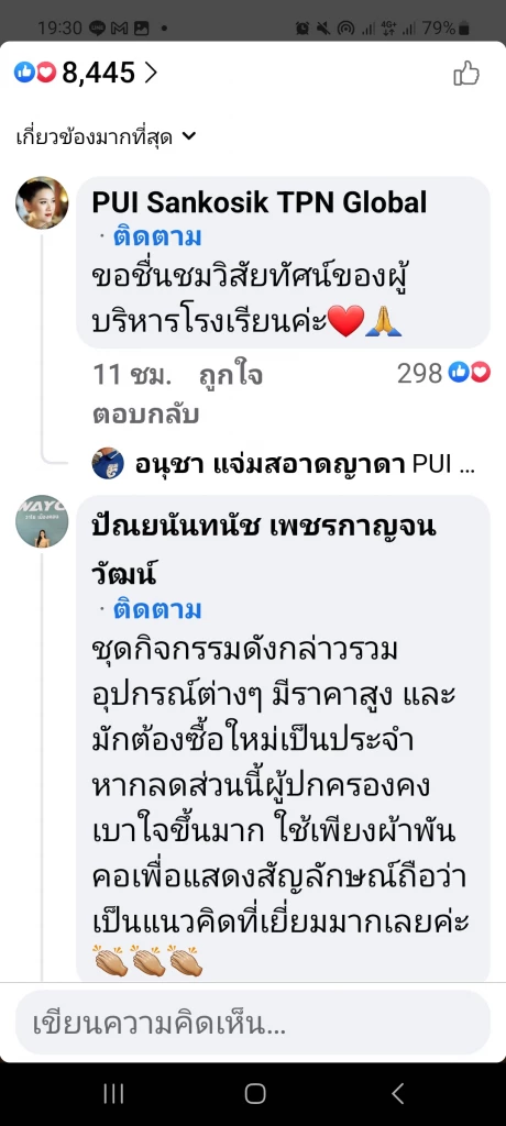 หลังจากโพสต์นี้ถูกเผยแพร่ออกไป มีชาวเน็ตเข้ามาแสดงความคิดเห็น ส่วนใหญ่ให้ความชื่นชมวิสัยทัศน์ผู้บริหาร และบางคนต้องการให้เป็นนโยบายมาตรฐานเดียวกัน เพราะชุด "ลูกเสือเนตรนารี" ราคาแพง